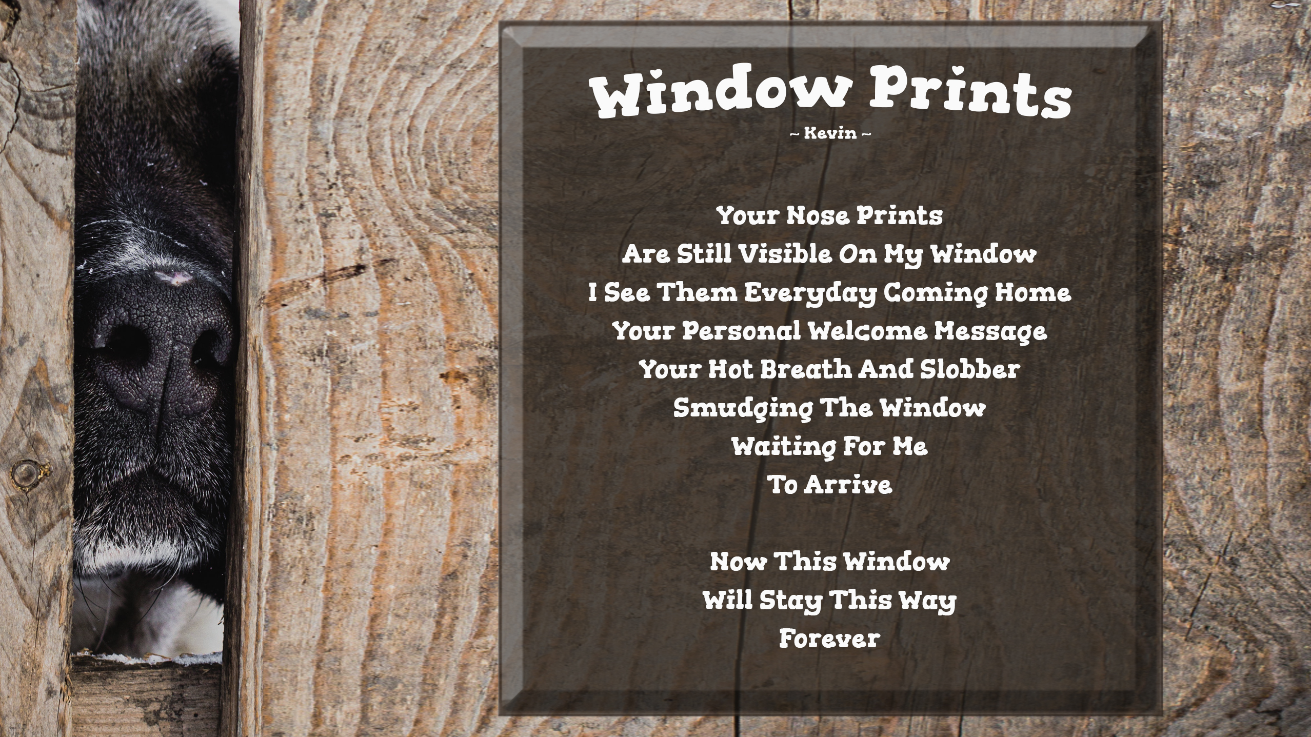 We were talking earlier in the week about how coming home is so different without their excitement and energy to welcome us home. Now, without them in our lives, we suddenly treasure the little things that they leave behind...for instance, smudges on windows. You're not alone in wanting to preserve those memories forever.